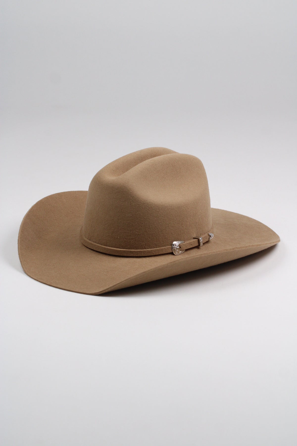 With a 30X merino wool quality rating, this hat blends rugged authenticity with refined craftsmanship. The Risen West features a classic cattleman crown, traditional curved brim, and signature satin lining for a polished interior finish. A handstitched vegan leather sweatband ensures comfort and breathability through long days and late nights.