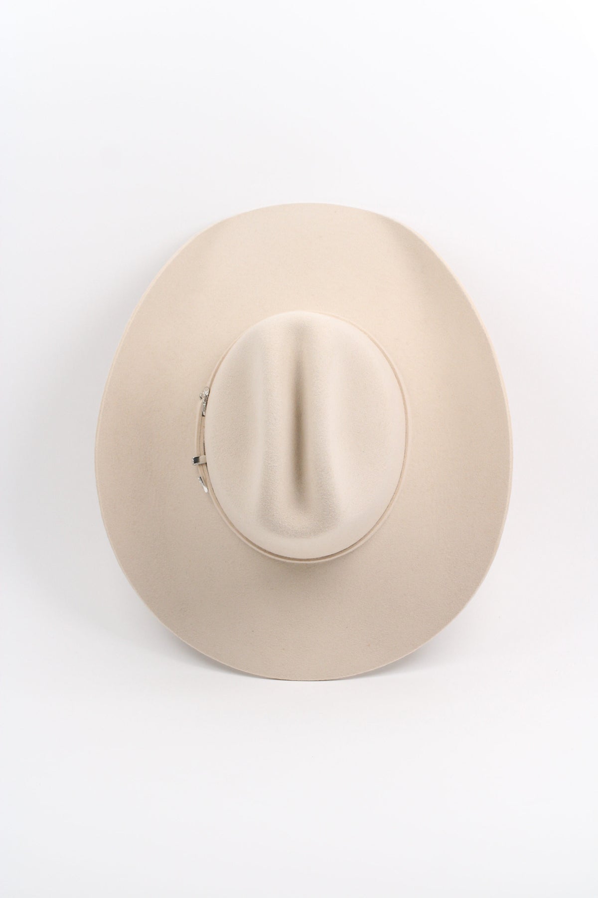 With a 30X merino wool quality rating, this hat blends rugged authenticity with refined craftsmanship. The Risen West features a classic cattleman crown, traditional curved brim, and signature satin lining for a polished interior finish. A handstitched vegan leather sweatband ensures comfort and breathability through long days and late nights.