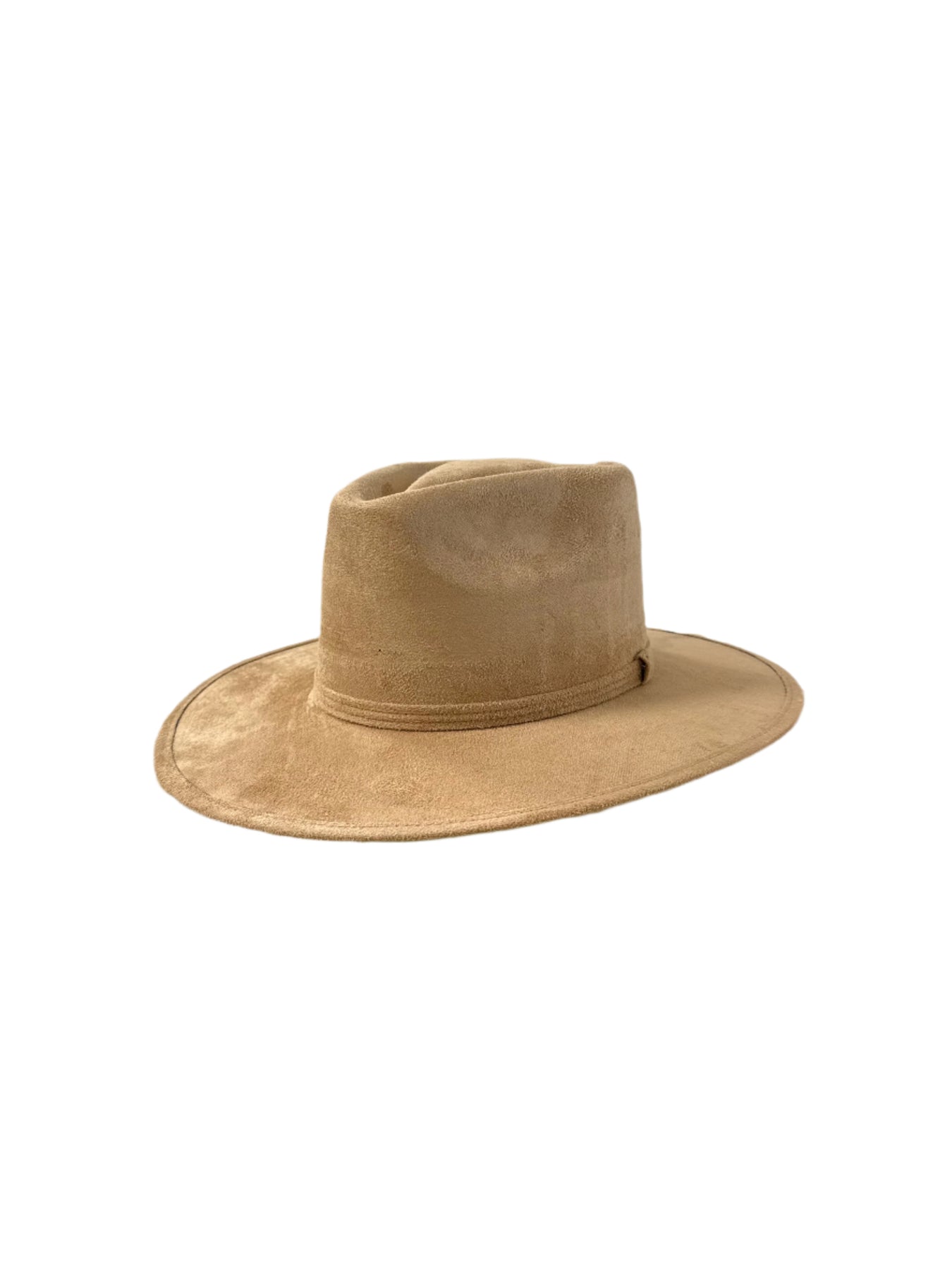 Vegan Suede Arrow Crown Hat- Cappuccino
