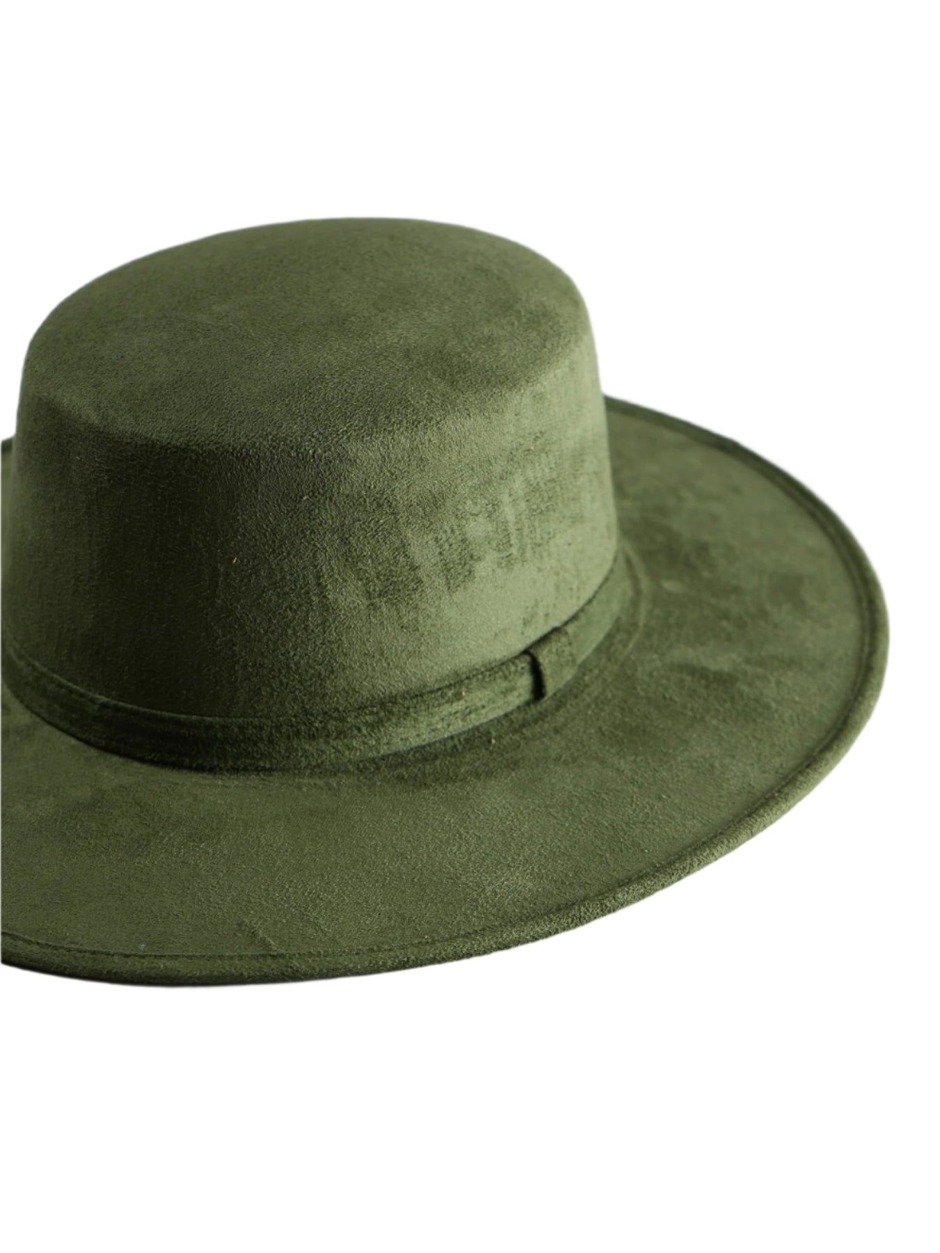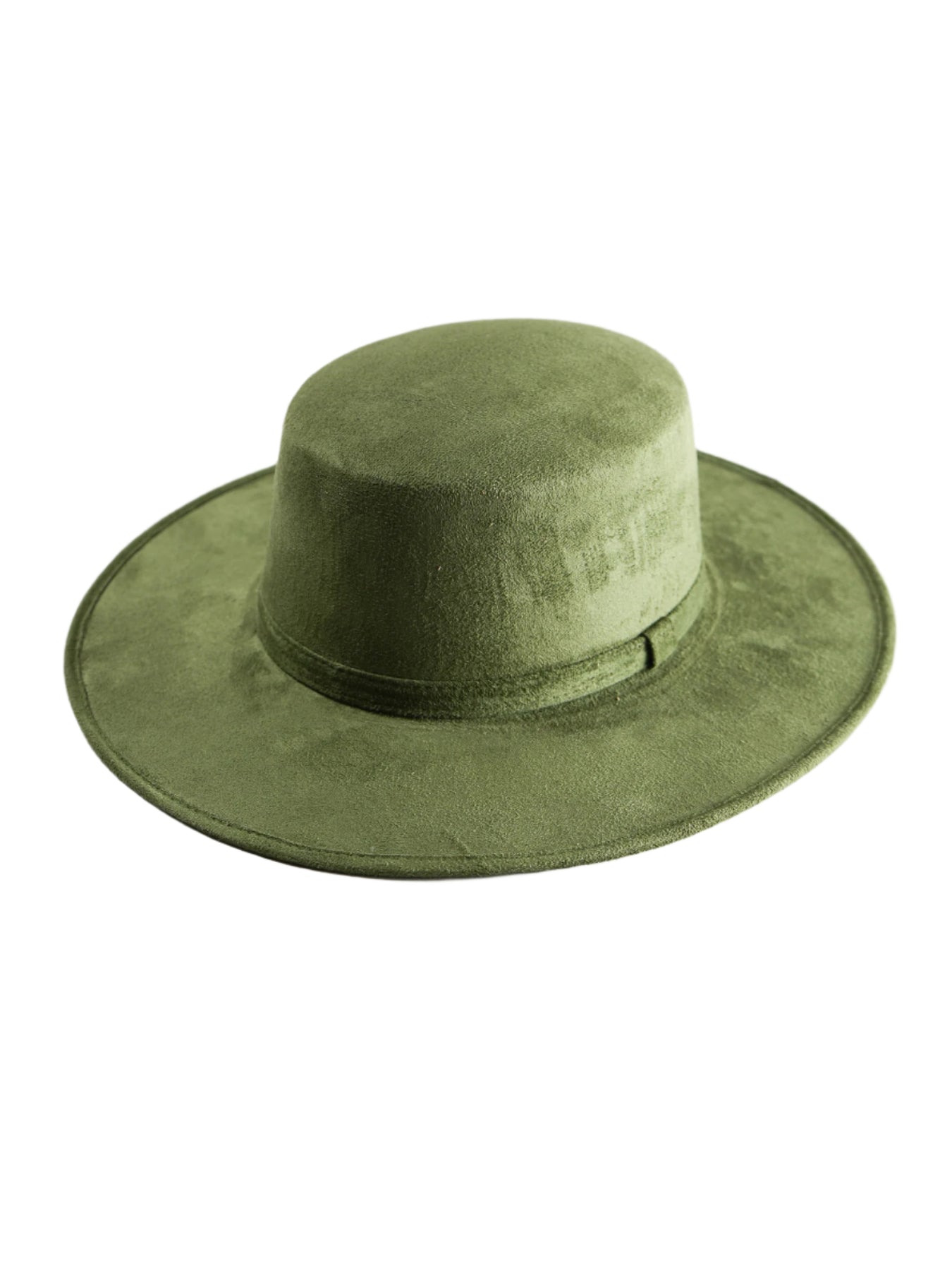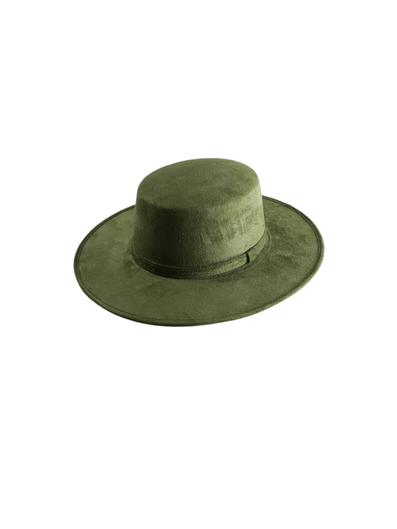 Vegan Suede Flat Top Hat- Olive Green