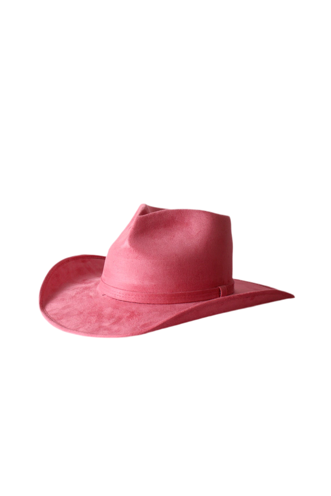 Vegan Suede Heart Shaped Cowboy Hat- Coral