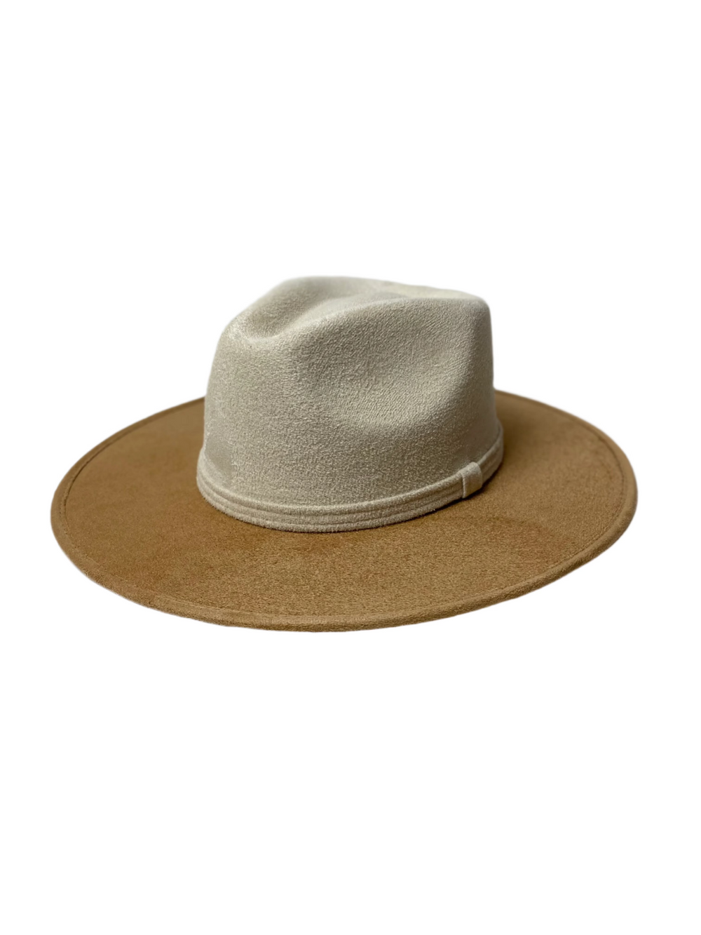 Vegan Suede Rancher Hat -Duo Tone - Ivory + Caramel