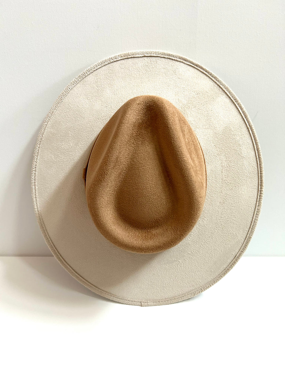 Vegan Suede Rancher Hat - Two Tone - Ivory + Cappuccino