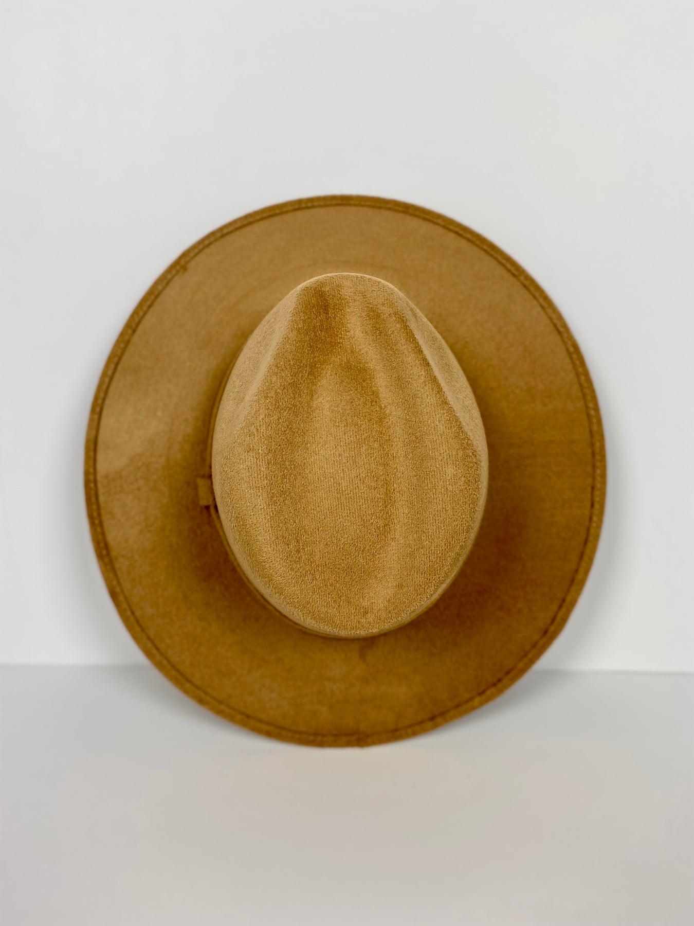 Vegan suedeColor: Cappuccino (MSRP) $35- durable stiff brim.- 3" brim- one size fits most kids to age 3.