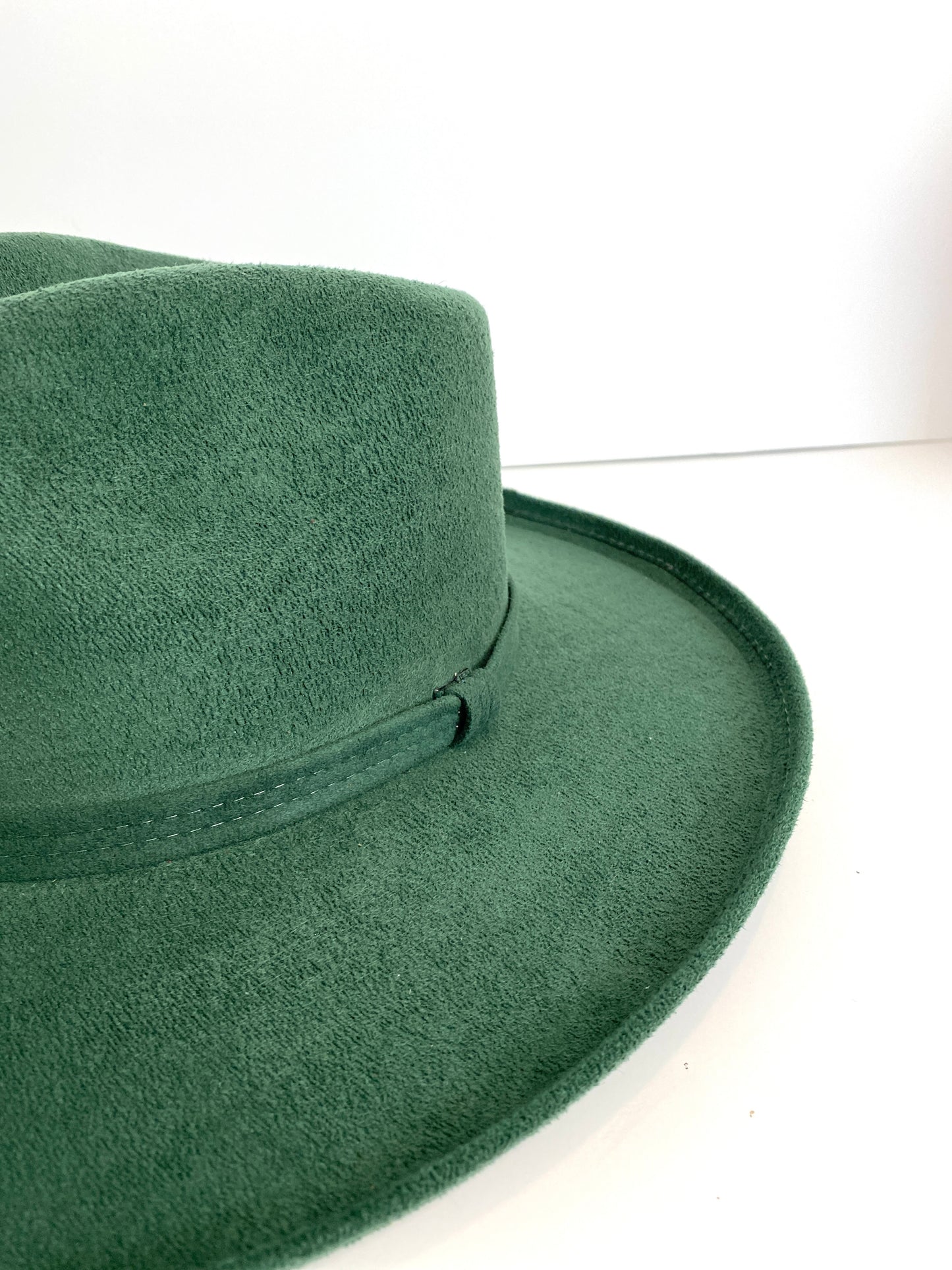 Vegan Suede Rancher Hat - Pencil Brim - Hunter Green